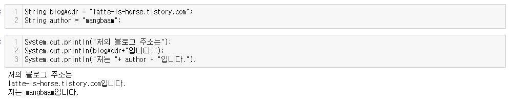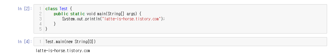 주피터 노트북에서 자바를 사용하는 장점은 위 예제처럼 클래스를 작성하지 않고도 바로 사용할 수 있다는 점이다.