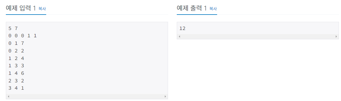 첫 번째 줄에 분기점의 수와 분기점들을 잇는 길의 수를 의미하는 두 자연수 N과 M이 공백으로 구분되어 주어진다.(1 ≤ N ≤ 100,000, 1 ≤ M ≤ 300,000)