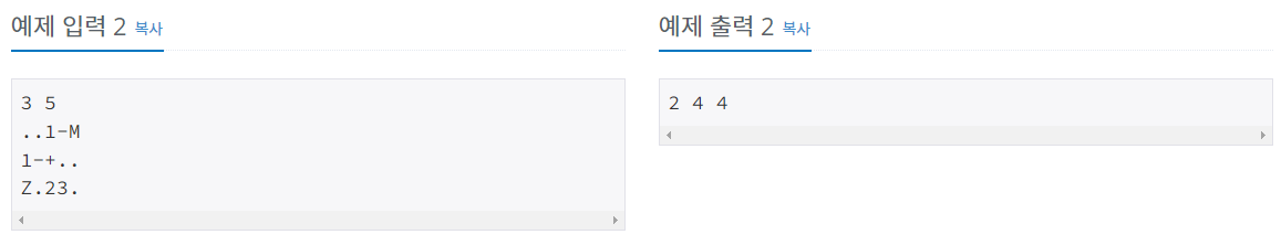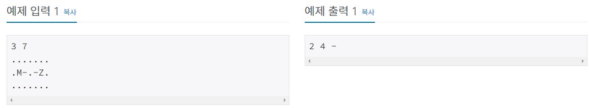 - 모스크바의 위치를 나타내는 'M'과 자그레브를 나타내는 'Z'. 두 글자는 한 번만 주어진다.
