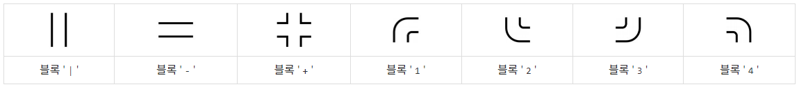 - 블록을 나타내는 '|'(아스키 124), '-','+','1','2','3','4'