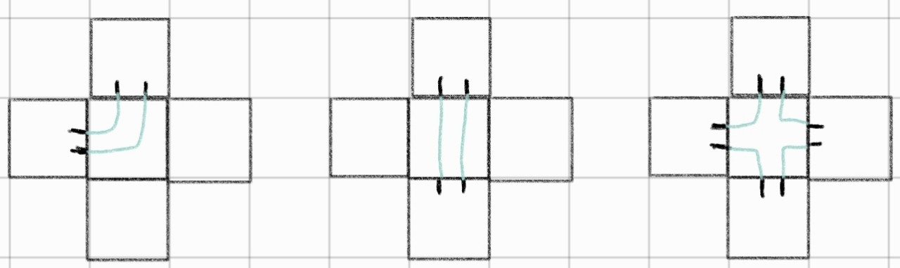 나는 모양을 유추하기 위해 p 라고 하는 리스트를 만들어서 상, 하, 좌, 우가 연결되어 있는지 여부를 체크했고, 이 값을 2진수로 바꾸어서 비교하는 방식을 사용했다.