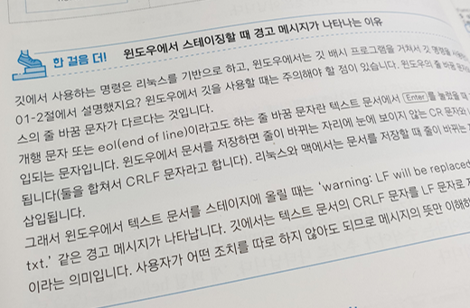 처음 접하는 내용이라면 명령어를 쳤을 때 어떤 결과가 나오는 것이 제대로 동작한 것인지 항상 확인하면서 공부하게 된다. 이런 점들을 한 번에 보여주기 때문에 시간 낭비 없이 빠르게 이해할 수 있다