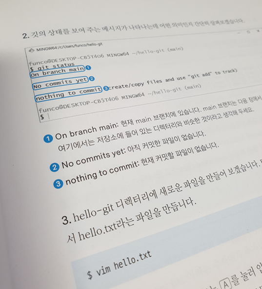 2. Git cli 환경에서의 의미들을 꼼꼼히 알려준다